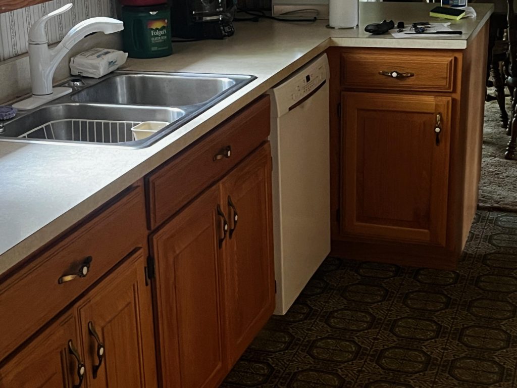 For example, the kitchen currently has carpet. This needs to be removed and replaced with a more “cooking-friendly” floor covering.